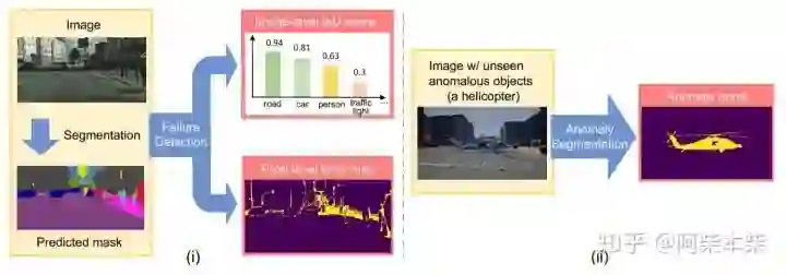 目标:现实语义分割的落地场景中,输入到语义分割模型中的图像是没有真值的,但是我们又想知道分割结果的好坏,所以我们的目标是进行故障检测(Failure Detection)和异常检测/分割(Anomaly Segmentation)。