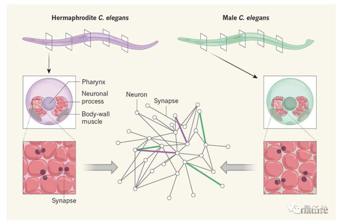 但是,雄性和雌雄同体的连接有30%是不一样的,研究人员分析,主要的性别差异体现在生殖功能不同上。