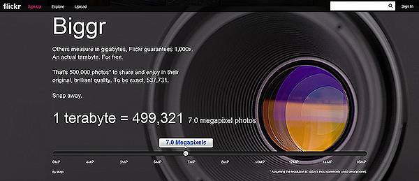 b: Flickr云存储空间达1TB的可视化描述