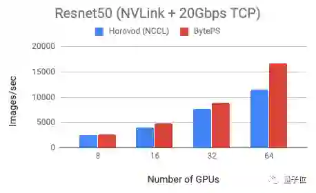 测试表明,与Horovod (NCCL)相比,BytePS在VGG16训练上的速度快100%,Resnet训练速度快44%。