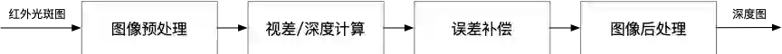 以目前最常见的散斑结构光为例,结构光算法整体流程如下图所示: