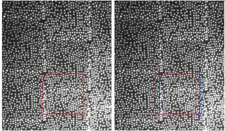 如图16所示,可以很容易看出,散斑整体发生了偏移,与上面的理论分析一致。