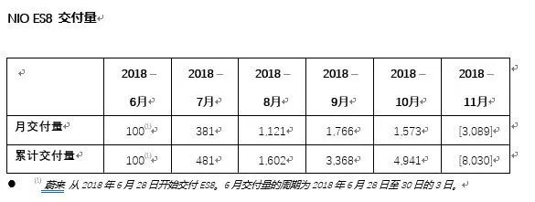 2、蔚来11月交付3089辆ES8 即将达1万台