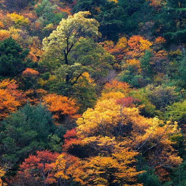 像是隔年要作废,尤其像不用完要受罚,“秋”滥用颜色了——树上、地上,红、黄、橙、赭、紫……挥霍无度,浓浓艳艳,实在用不完了。