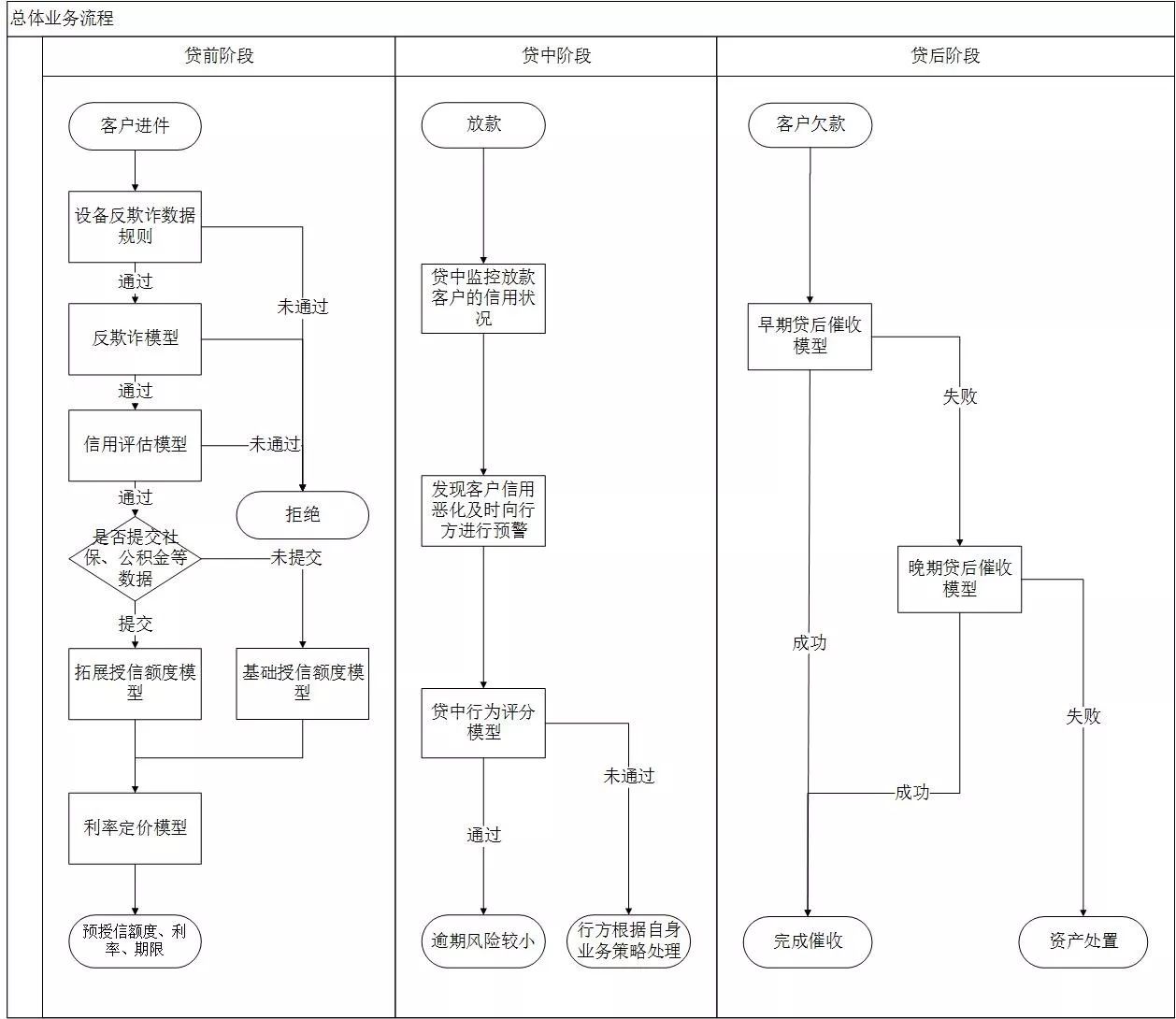 在贷后阶段,大数据催收对传统催收模式有颠覆性变革,利用大数据科技手段充分挖掘逾期客户个人资产价值,通过早期催收模型、晚期催收模型识别个人信贷客户潜在风险与价值。以此协助客户解决逾期、不良管控的顽疾,降低委外催收成本,同时实现风险管控的前移,早发现,早管控,早催收,及时止损。