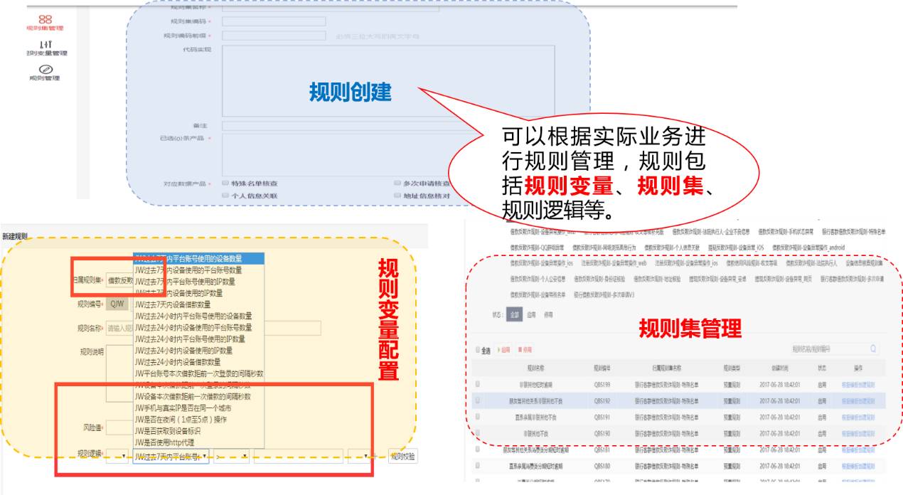 规则中心模块可实现规则初始化、规则集管理、规则变量配置、规则回溯、规则应用等功能。
