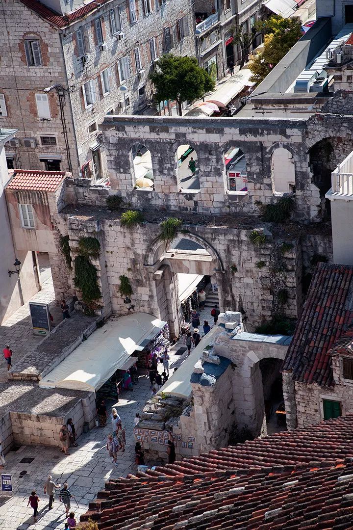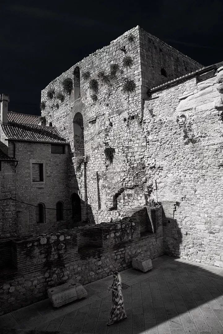 普利特的戴克里先宫,是一座建于罗马时代的皇宫。虽已成一片废墟,残垣断壁之下也能看出当年的工程浩繁,宏伟壮丽。走入巨大的石头宫殿里,阴森凄凉感扑面袭来。
