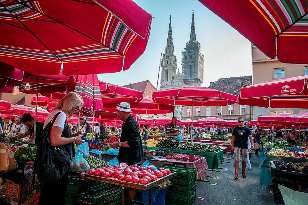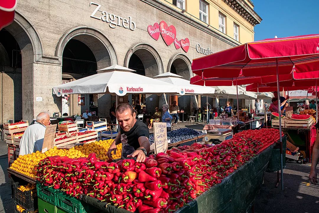 1930年开张的多拉克菜市场位于圣母升天大教堂旁边,号称萨格勒布的“菜篮子”。这里满目是新鲜果蔬鲜艳的颜色,空气中弥漫着水果和蔬菜的香味。