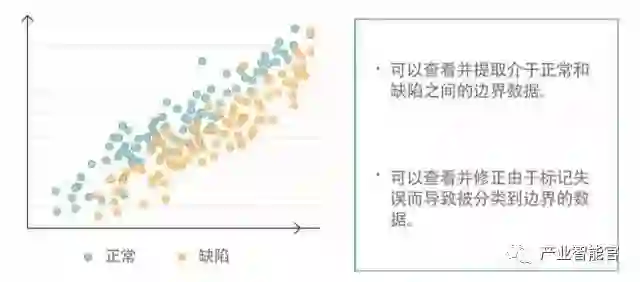 向用户展示介于正常和缺陷之间的边界数据,抽取出会影响到模型性能的图片,经过分析之后可以非常容易地提高模型的性能。