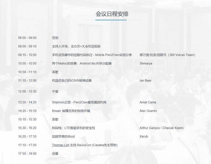 MOSEC移动安全技术峰会始办于2015年,由盘古团队和POC主办,至今已成功举办三届。第四届 MOSEC 移动安全技术峰会将于2018年6月22日(周五)在上海万达瑞华酒店举行。来自全球的优秀互联网安全专家以及众多神秘重量级演讲嘉宾将再次聚首上海,向世界分享最新安全研究成果。