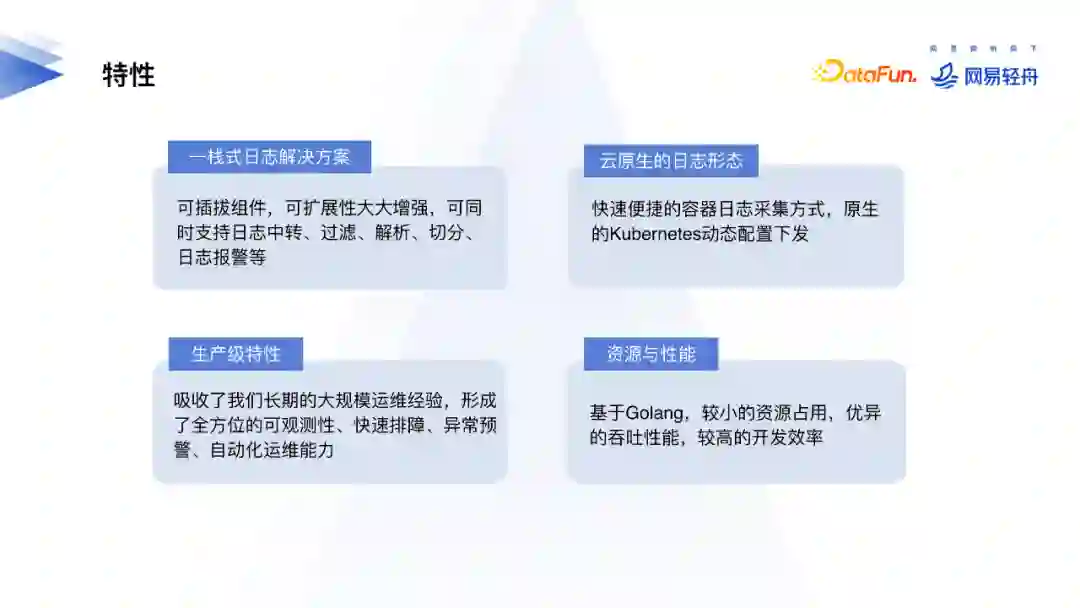 Filebeat设计之初是为了解决Logstash的问题,作为轻量级的日志采集端运行,不适合作为中转。Logstash在日志切分、解析等方面表现出色,但是问题在于性能较弱。虽然Flink性能和表现出色,但我们的很多场景只需要简单的日志切分,Flink一般依赖流式处理基础平台的支持,同时在交付过程中用户要额外付出Flink的机器和运维成本,所以我们需要一个更轻量、成本更低的方案。