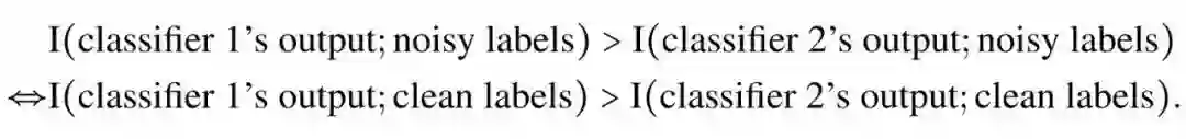 也就是说,这个信息测度在噪音标注(noisy label)上对分类器的序应该与其在正确标注(clean label)上对分类器的序相同。然而,香农的互信息不满足以上性质。