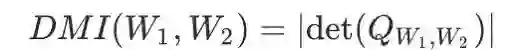即 DMI 可以看成是两个取值范围相同的离散随机变量的联合分布矩阵的行列式的绝对值。