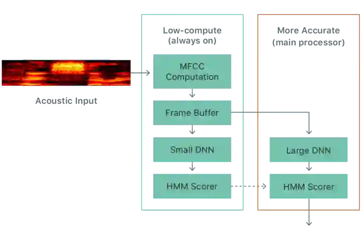 Hey Siri 唤醒的工作流程,绿色方框的即为 AOP 处理器