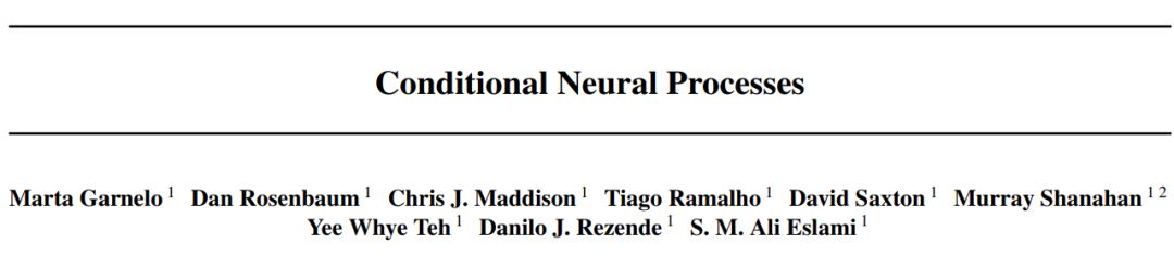 在论文《Conditional Neural Processes》中,DeepMind 提出了一族模型,可用于解决监督学习问题,并提供了端到端的训练方法,其结合了神经网络和类似高斯过程的特征。DeepMind 称这族神经网络为条件神经过程(CNP),以表明它们在给定一系列观察数据时定义函数的条件分布。CNP 对观察数据的依赖由一个神经网络参数化,其在输入的置换排列下保持不变。该架构的测试时间复杂度为 O(n+m),其中 n、m 分别是观察样本数和目标数。