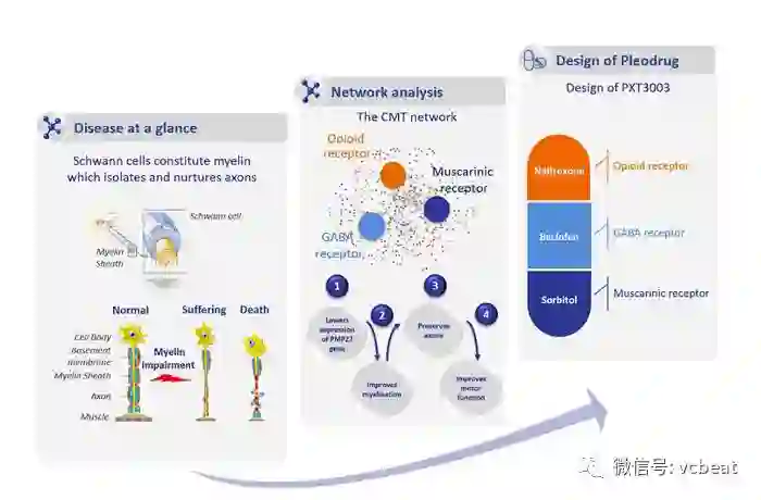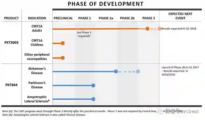 Pharnext利用新方法研发的药物可不止PXT864这一种。公司同时还着眼于另外一种更加罕见的神经退化疾病——CMT-1a(腓骨肌萎缩症1A型)。这种疾病在欧美的发病率为1:3300~1:2500,临床表现为四肢肌无力,大部分患者需要借助轮椅生活。