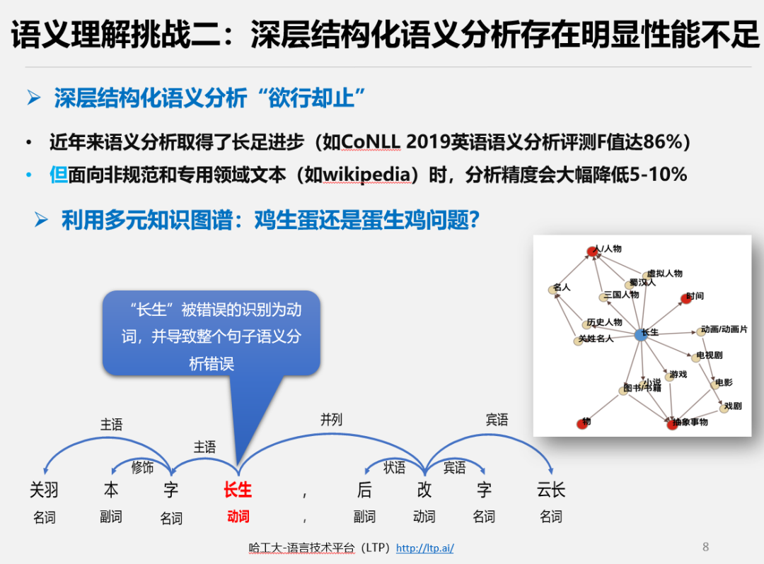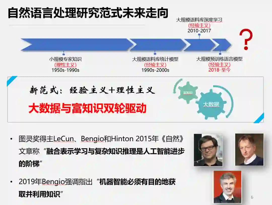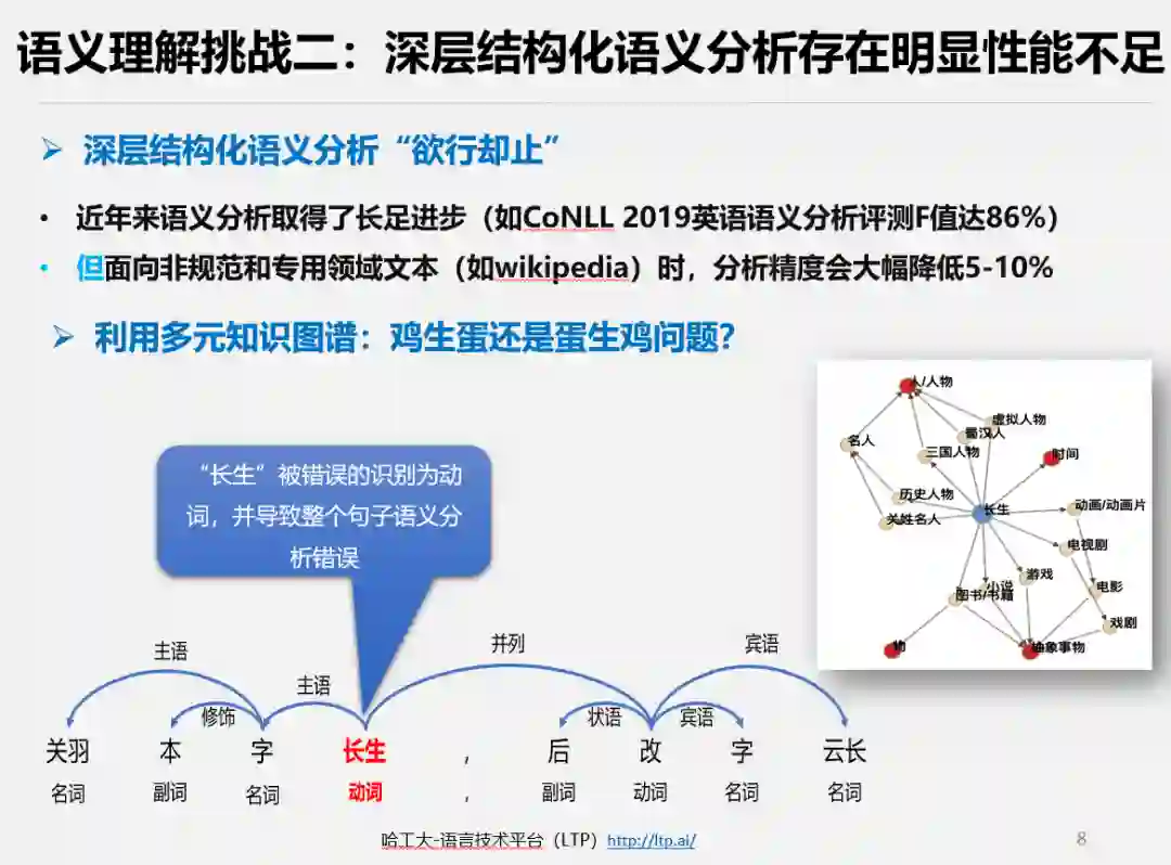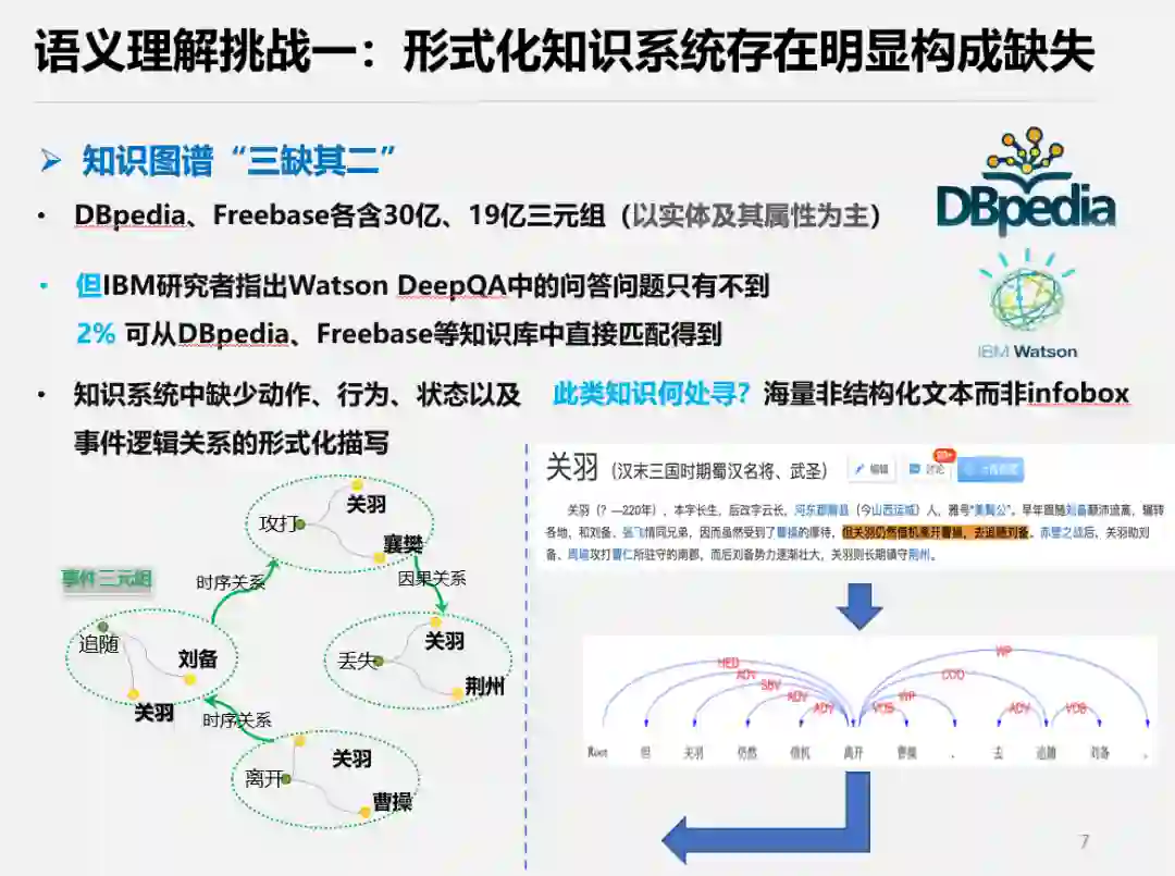 图注:何晓东 来自京东数科的何晓东博士认为有效利用多模态信息是走向通用人工智能的非常重要的方向。因为人的信息肯定是从多个模态来的,很多信息光读文本很难判断。举个简单例子,光看文本不能区别出颜色的意义,红色、绿色对文本来说是个符号。所以从这个角度来说,多模态肯定是 AI 走向通用智能的重要方向。但另一方面,利用多模态信息也非常困难。比如“看图说话”这件事情以前一直做不了,是因为图片本身的模型算法和语言算法完全不一样,到了深度学习提出概念做Embedding以后,才看到一些有意思的新希望。近年有研究将不同模态的数据表示投影到统一的连续空间,在这个空间中做转换运算,将原始的输入转换为抽象的表达,从这些抽象的表达中生成文本或图像。在这类研究中,如何学习一个通用的共有的语义空间,使得不同模态的信号能进行比较或者进行计算转换,以及在不同模态之间如何做映射,都是值得研究的问题,也是最近逐渐兴起的研究方向。这个方向有些意义和用途,比如最近很多做人工智能内容生成的算法模型开始实用化,京东用类似的模型,给定商品规格、商品图片,就可以生成一段关于描述这个商品的广告词,这是一个很简单的应用。反过来也一样,例如画一幅画,描述画一只鸟,是蓝色的背、红色肚皮,模型就可以创作出来,可以做更多创作性应用。另外何晓东博士指出,孙茂松教授提出的三个挑战对应的愿景是很好的技术路线,是否能定义一个评价标准,或者是一个具体的任务,来作为向这些愿景前进的量化评判方法。例如知识图谱从“三缺其二”到“三分归一”中,对于三元组的知识现有的评价任务是QA,而“三缺其二”中的“其二”可能需要更具现实意义的大规模任务来判定,这个任务是什么。其他两个愿景也是如此,应该利用什么任务进行评判。
