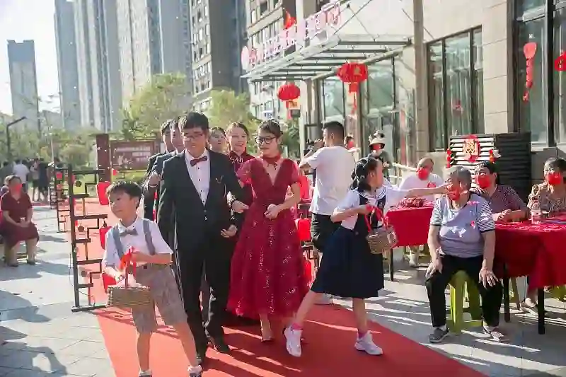 2022年10月3日,江苏南通3对新人步入婚姻\图源视觉中国