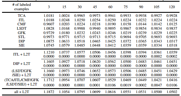 表 1:用于生成迁移学习经验的不同方法及它们带来的性能提升率。