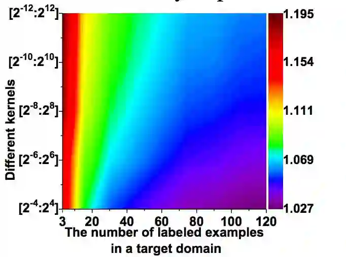 图 6:反射函数 f 中不同数量的核和目标域标注样本数量的变化趋势。