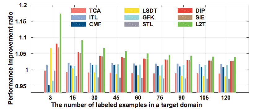 图 2:500 个源域和目标域测试对的平均性能提升率对比。