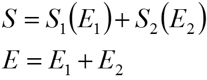 考虑两个处于热平衡的体系,他们一起组成一个孤立系统。那么这个系统的熵S与能量E便是两个体系的熵、能量之和,同时每个体系的熵S都是各自能量E的函数,即: