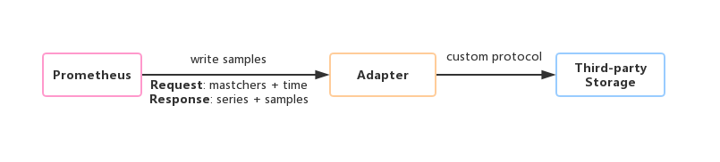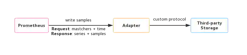 为了保持Prometheus的简单性,Prometheus并没有尝试在自身中解决以上问题,而是通过定义两个标准接口(remote_write/remote_read),让用户可以基于这两个接口对接将数据保存到任意第三方的存储服务中,这种方式在Promthues中称为Remote Storage。