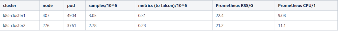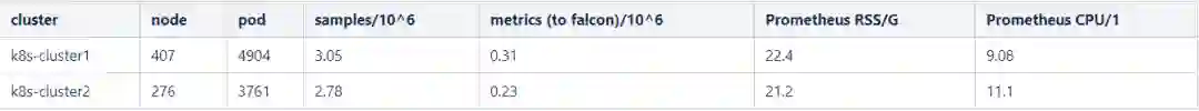 其二,是在规模较大的集群,Prometheus占用CPU与内存资源都较多(下表中为线上集群Prometheus的运行情况),偶尔会出现某些metrics抓取不到的情况,随着集群规模的扩大单个Prometheus将会遇到性能瓶颈。