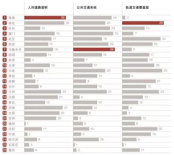 同时我们还注意到,武汉和西安的排名较去年都有所提高。这两个城市排名的上升同样得益于城市交通的高速发展。