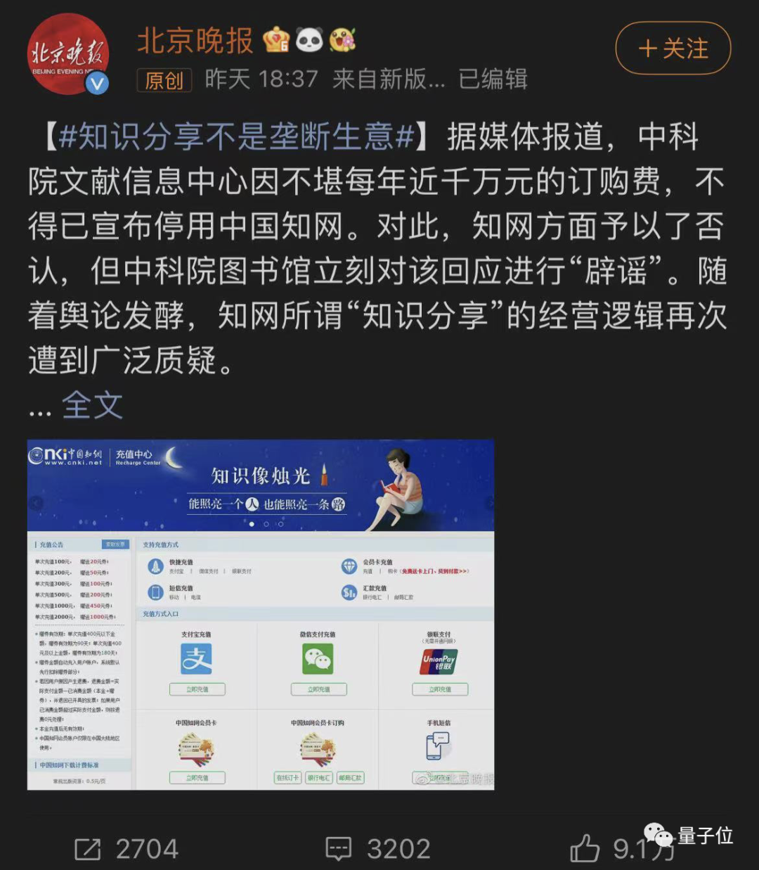 随后北大图书馆相关负责人曾表态说:“知网的购买费用涨价过高,已超出了图书馆的预算限额”。