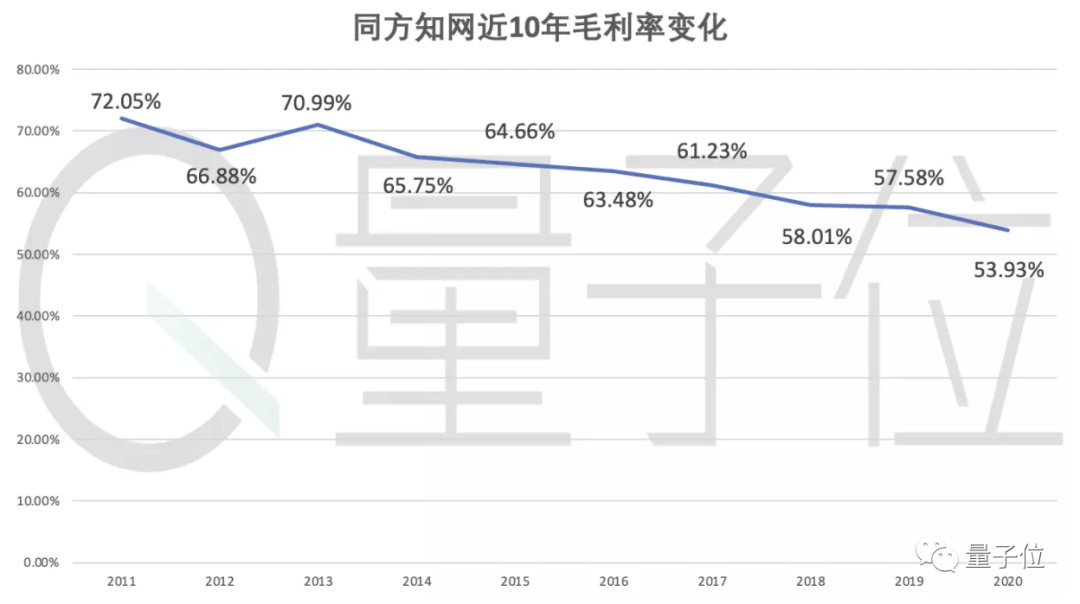 而从毛利率角度来看,知网近10年的该指标全部在50%以上,最高甚至达到了72.05%。