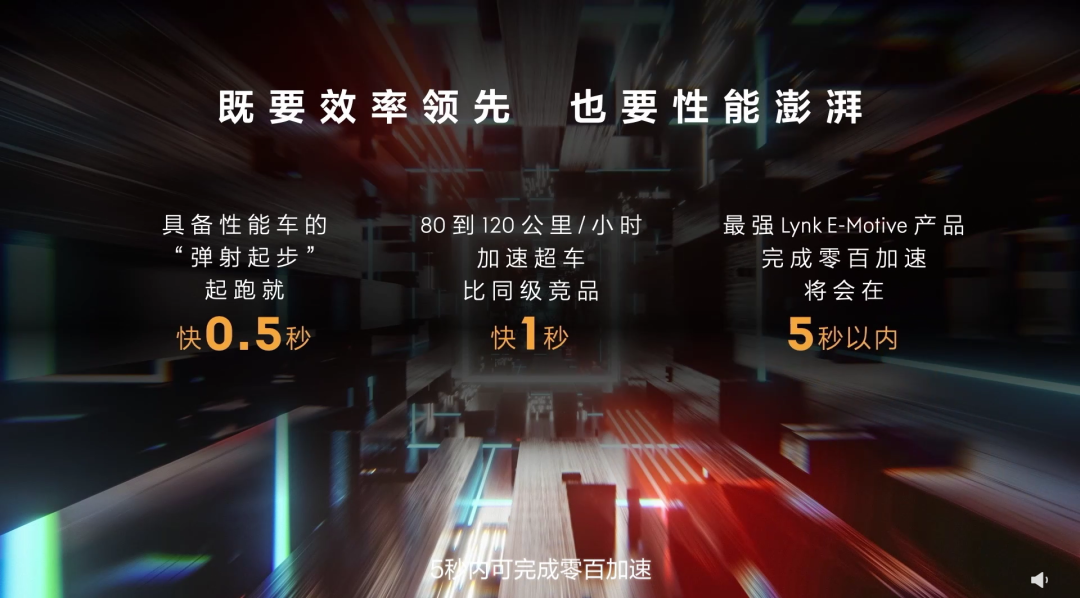 在双电机串并联混动的经典结构基础上,E-Motive 在 DHT 的动力输入轴(发动机端)与输出轴(车轮端)之间增加了 3 档变速机构,发动机可以在任何速度配合电机一起驱动车轮。E-Motive 另外增加弹射起步模式,让车辆的 0-100km/h 加速快了半秒,性能最强的版本能在 5s 以内完成百公里加速。