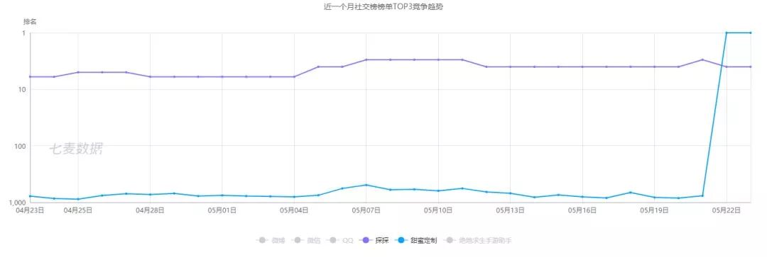 「甜蜜定制」&「探探」社交榜近一个月趋势对比图