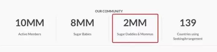 甜蜜定制成立于2006年,最先出现在美国,在平台上,想要寻找有钱人的一方被称为 Sugar Baby ,成功有钱的一方则被称为 Sugar Daddy 或者 Sugar Momma ,商业模式是会员制,Sugar Baby 们免费,Sugar Daddy&Momma 们需要交高额的会费。而就“Seeking Arrangement”官网数据显示,目前该社区有千万活跃用户,其中 Sugar Baby 有 8 百万,Sugar daddy&Momma 有 2 百万。
