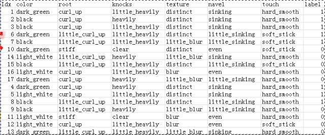 数据参照 《机器学习-周志华》 一书中的决策树一章。