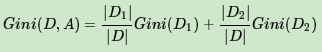 特别的,对于样本D,如果根据特征A的某个值a,把D分成D1和D2两部分,则在特征A的条件下,D的基尼系数表达式为: