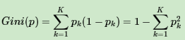 在分类问题中,假设有K个类别,第k个类别的概率为pk, 则基尼系数的表达式为: