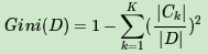 对于给定样本D,假设有K个类别, 第k个类别的数量为Ck,则样本D的基尼系数表达式为: