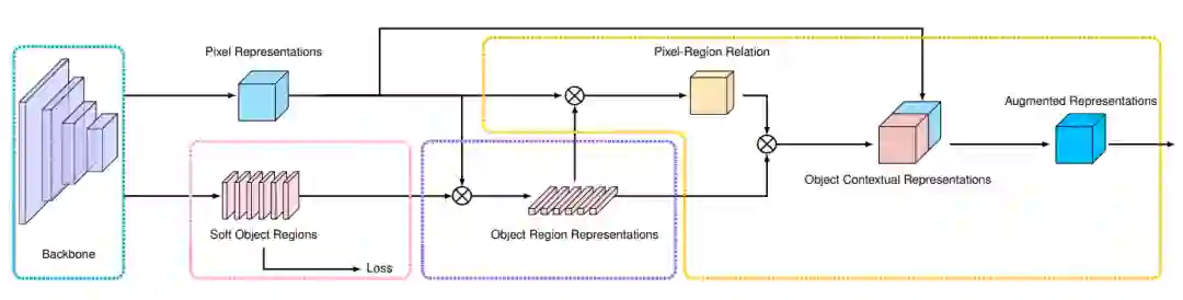 微软亚洲研究院提出的 OCR 方法的主要思想是显式地把像素分类问题转化成物体区域分类问题,这与语义分割问题的原始定义是一致的,即每一个像素的类别就是该像素属于的物体的类别,换言之,与 PSPNet 和 DeepLabv3 的上下文信息最主要的不同就在于 OCR 方法显式地增强了物体信息。