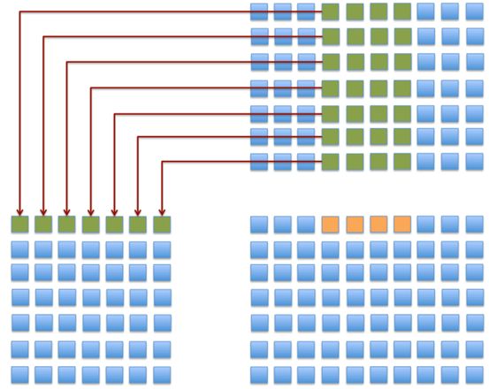 主存和缓存的最小数据交换单元是cache line, 所以访问内存的地址最好是按照cache line的大小进行,这样可以保证最高效的数据访问。比如某台机器cache line大小为64Bytes,申请一个128Byte的内存区域,将它的开始地址放在非64Byte对齐的位置,如0x80000020,那么访问这128Byte需要3条cacheline的访问, 若放在0x80000040, 则只需要2条cache line, 一般通过多申请一点点内存,来避免这种不对齐,比如用posix_mem_align() 函数;更近一步,为了对齐访问,有时需要对图像的边界做一些padding的,比如 224x224的图片,我们可能会存储在256x224的内存地址中,保证在随机访问某一行时,地址处于对齐的位置。如: