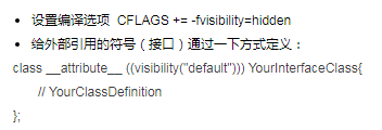 针对动态库的发布,还可以通过Invisible Symbol的方式,将不需要的符号隐藏起来,省下目标库文件中符号表的表项,如果你的代码有大量的函数,这会是不小的提升,试试看,说不定有惊喜。具体写法是: