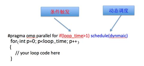 OPENMP会自动为循环分配线程,但并非所有循环都适合做多线程优化,如果每次循环只做了非常少的事情,那么使用多线程会得不尝失。线程的创建和切换会消耗一定的系统资源,线程调度有一定的规律,操作系统在没有高优先事件触发的情况下(中断,异常,信号量), 调度周期都在毫秒级别,如果每次线程执行时间没有达到一定的量,多线程的效果就会大打折扣。实际运用中,可以通过 #pragma omp parallel for if (cond) 语句来判断runtime过程中是否要启用多线程。