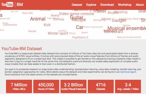 YouTube 8M - 准备好处理视频,但无法节省大量的存储空间?此数据集包含数百万YouTube视频ID和数十亿个音频和视频专题,它们是使用最新的深入学习模型预提取的。