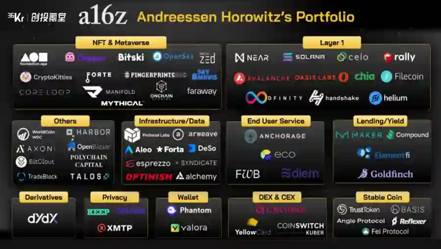 无聊猿的例子刚好代表了a16z在Web 3.0时代 的投资模式。他们提前布局了全球最大的Web3.0生态,如今市场上超过40%的NFT项目都与他们有关。而a16z在Web3.0的生态布局有一个最大的好处,它们形成了巨大的网络效应,所投项目的底层都可以互联打通、跨界链接。a16z改变了行业格局,形成了开放的互联生态,因此产生更大的投资价值。