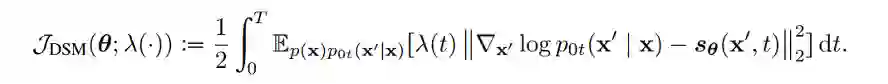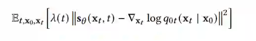 方法利用扩散 SDE 推倒出生成数据的对数似然与分数函数匹配的损失函数的关系。这样通过适当设计损失函数,就可以最大化 VLB 和对数似然。Song et al. 证明了可以设计损失函数的权重函数,使得 plug-in reverse SDE 生成样本的似然函数值小于等于损失函数值,即损失函数是似然函数的上界。分数函数拟合的损失函数如下: