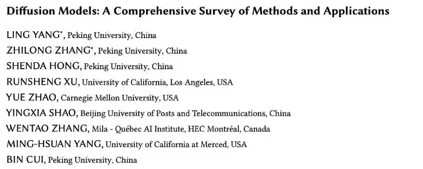 本综述(Diffusion Models: A Comprehensive Survey of Methods and Applications)来自加州大学 & Google Research 的 Ming-Hsuan Yang、北京大学崔斌实验室以及 CMU、UCLA、蒙特利尔 Mila 研究院等众研究团队,首次对现有的扩散生成模型(diffusion model)进行了全面的总结分析,从 diffusion model 算法细化分类、和其他五大生成模型的关联以及在七大领域中的应用等方面展开,最后提出了 diffusion model 的现有 limitation 和未来的发展方向。