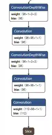 用深度可分离卷积替换普通卷积,并且将卷积堆叠的数量从 4 个减少为 2 组。在通道数上,将 256 维压缩至 96 维