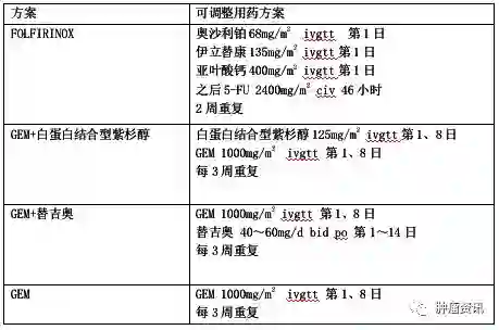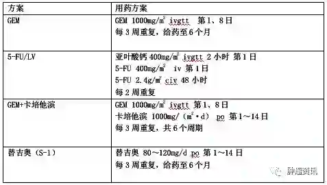 同步化疗方案单药首选采用 GEM 或氟尿嘧啶类(5-FU 持续静脉滴注,或卡培他滨,或 S-1),或者给予多药联合GEM 或氟尿嘧啶类为基础的方案。