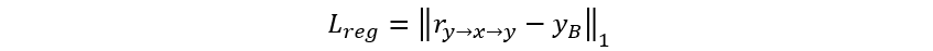 当输入 x_A 与 y_B 时,我们有理由相信,他们同样被适应到共有空间中,该空间保留了两张图片的语义特征。我们可以在这个特征空间中算两张图两两位置间的相似度矩阵 M,其中矩阵元素 M(u,v) 表示 x_A(u) 与 y_B(v) 之间的语义相似性。这个相似度矩阵也可以理解为注意力机制,因而 x_A 的对应点实际上是 y_B 中每个点的加权和,其权重取决于他们之间的语义相似度。因此,如果学习得当,我们将得到变形的 y_B(记为 r_(y→x),也就是图3中的 warped exemplar),该图与输入 x_A 语义对齐。这里,我们引入一个对应关系正则项,要求 r_(y→x) 经过反向形变后可以重建范例图片: