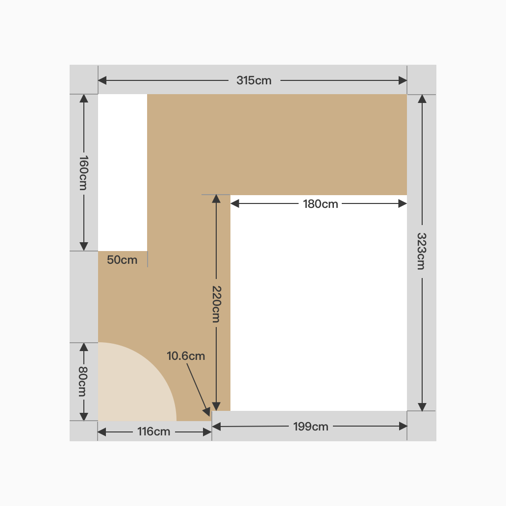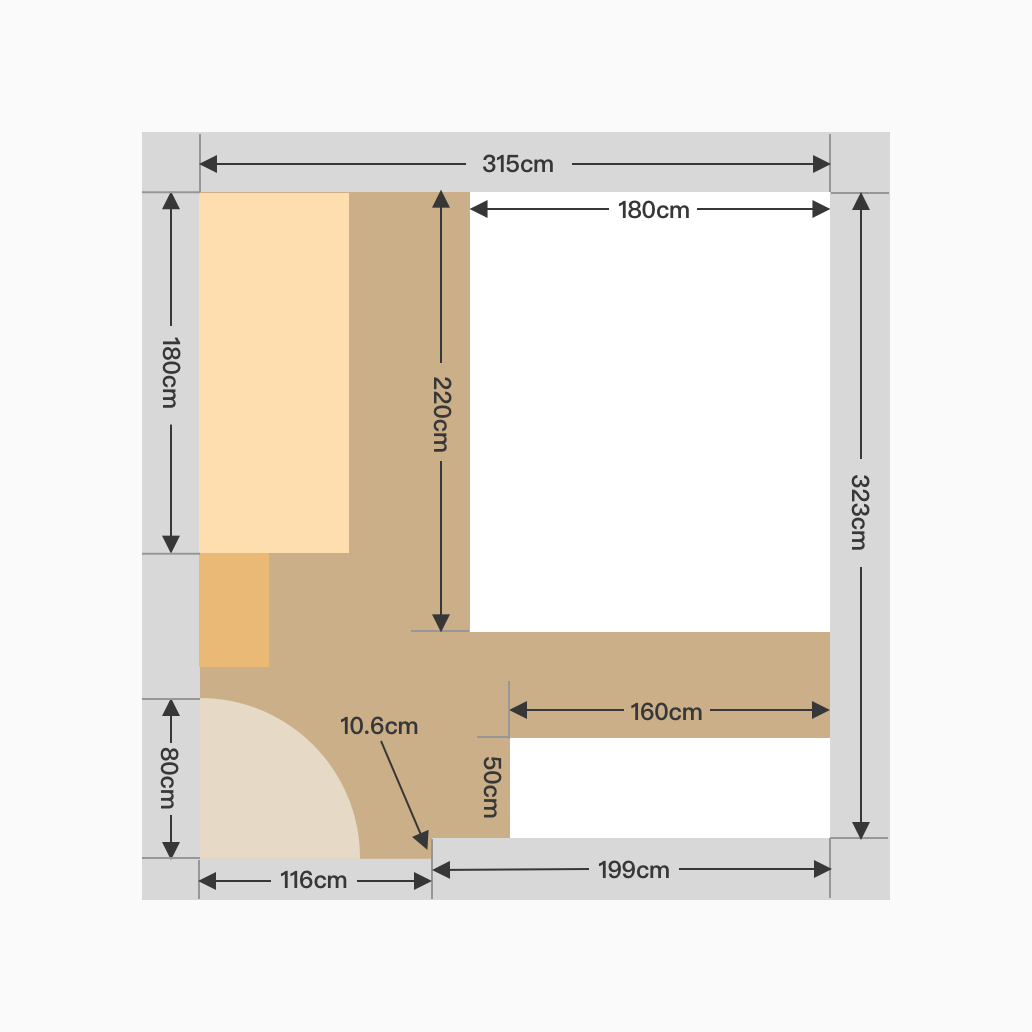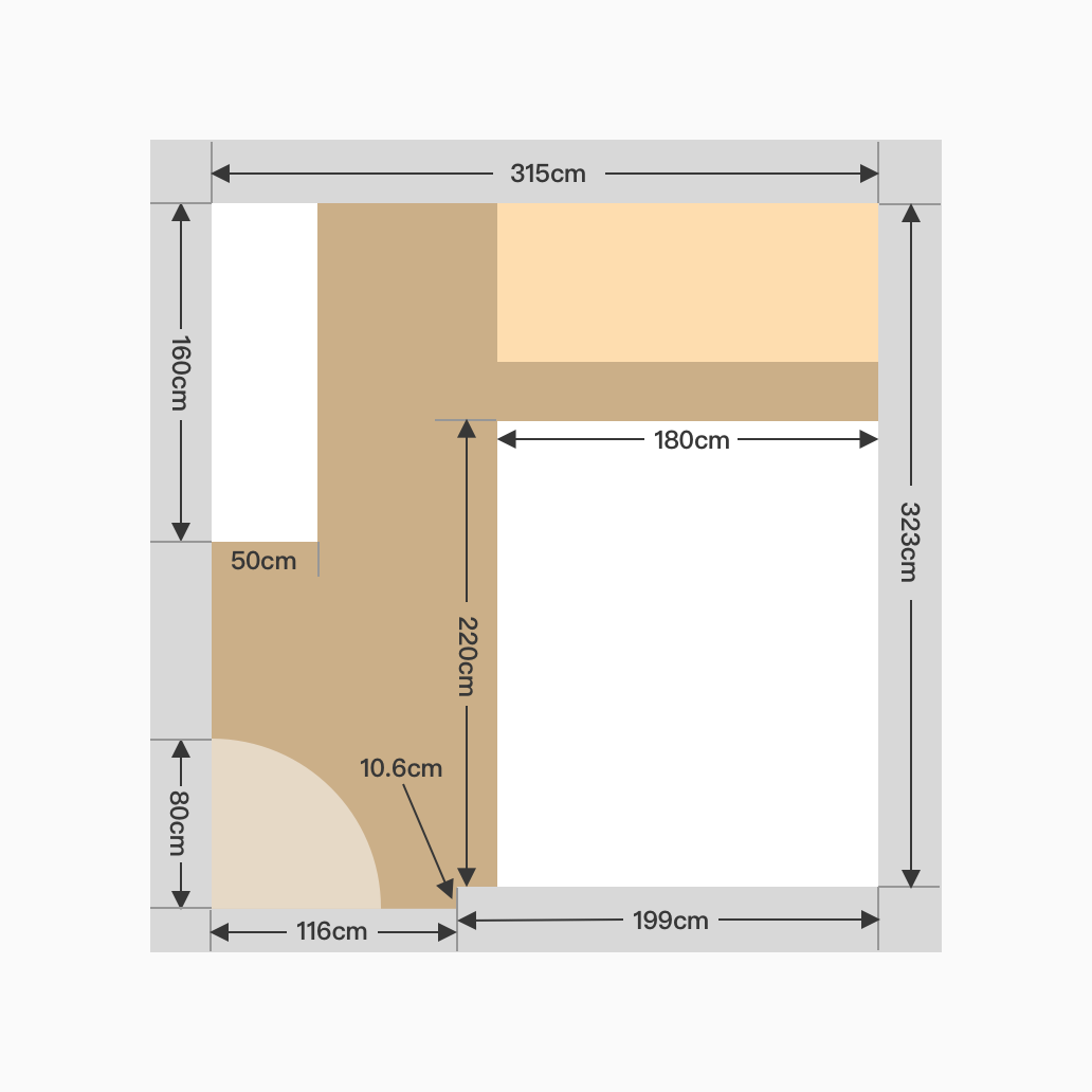 但要提醒的是,卷尺测量出来的结果并不会特别精确,因此在物品的取值可以往上多算 0.5 -1cm 的余量,而房间的长宽往下算 1cm。同时切记「精准匹配」的陷阱,往往在平面图形上能够放下的物品,在现实中却无法放置的情况。